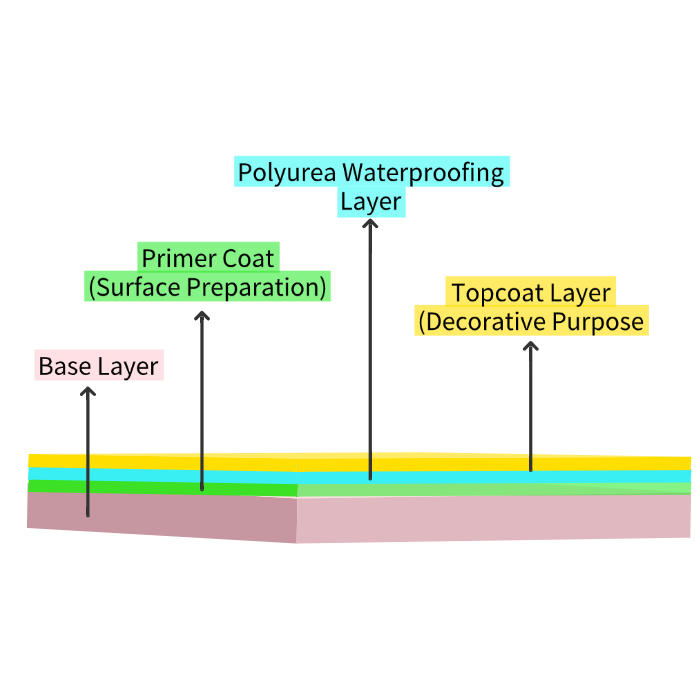 Polyurea waterproofing material is a high-performance elastic waterproof and anti-corrosion material applied by manual troweling or rolling. Once cured, it forms a seamless and highly elastic protective membrane.